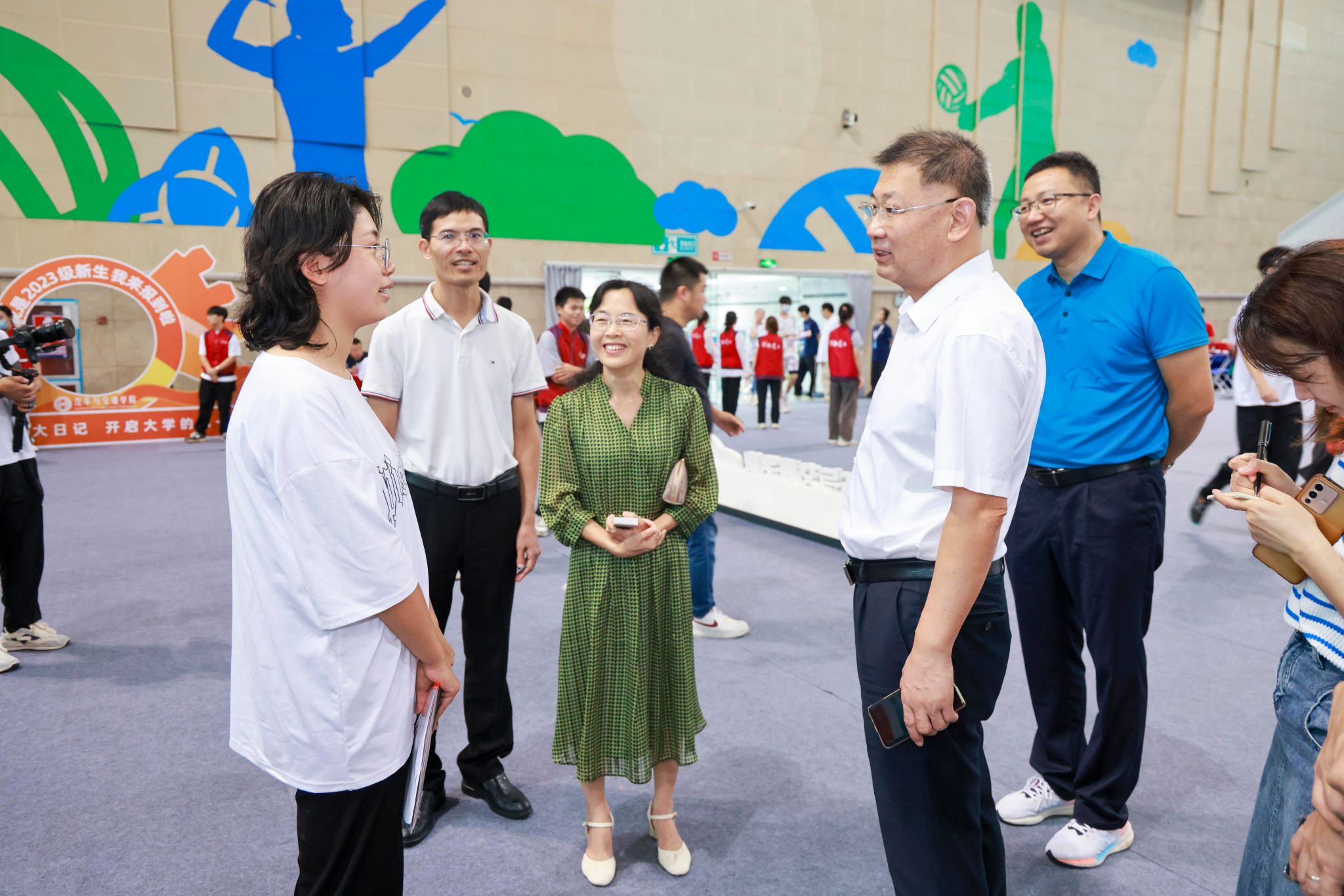 一大早,學(xué)校黨委書記楊欣斌、校長許建領(lǐng)、副校長董朝君及相關(guān)部門負(fù)責(zé)人就來到迎新現(xiàn)場,詳細(xì)了解各學(xué)院的新生報(bào)到流程、綠色入學(xué)通道、報(bào)到人數(shù)、生活物資保障、宿舍安排等工作情況,并向迎新工作人員送去關(guān)心與慰問。