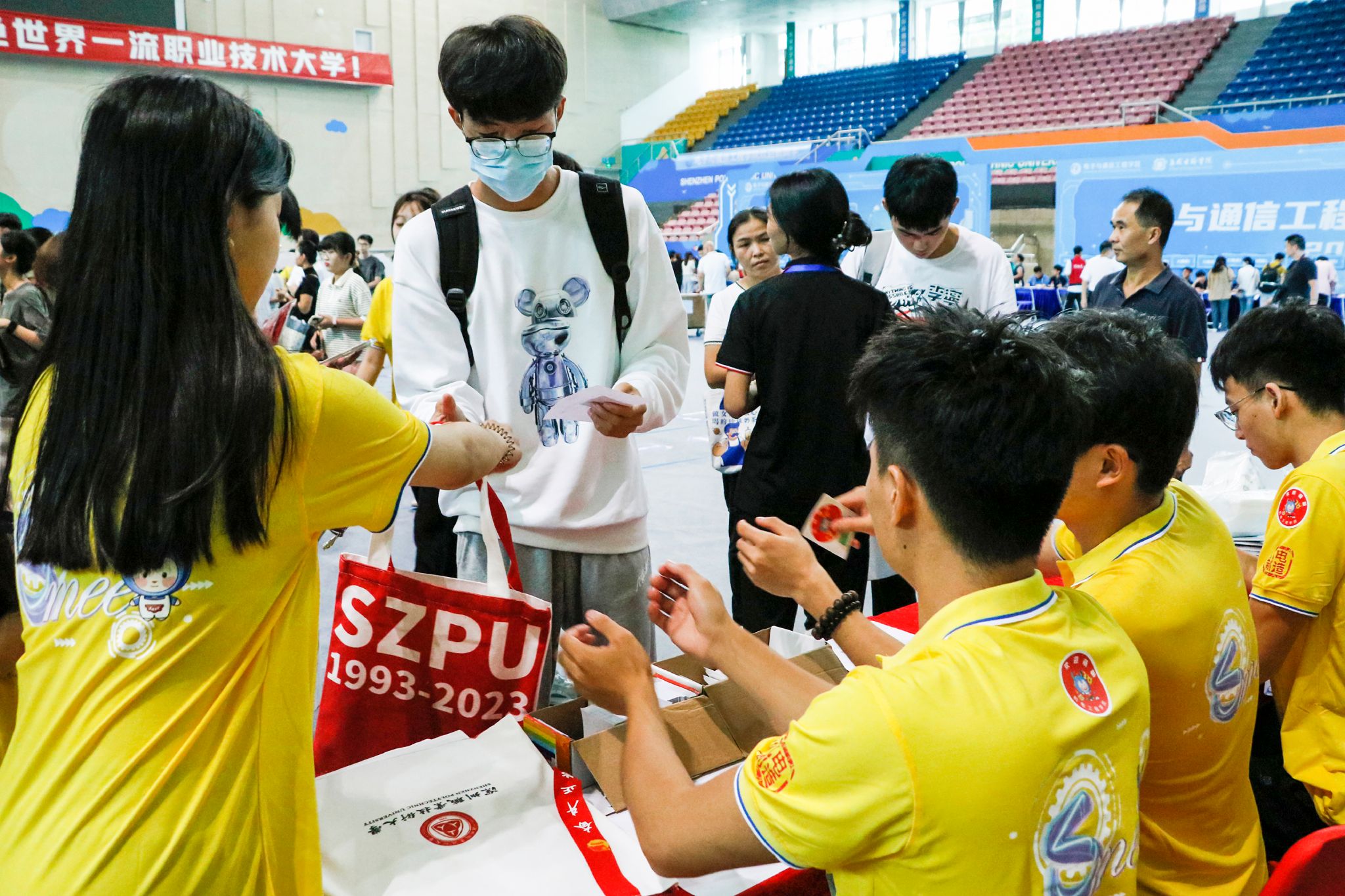 迎新首日的校園內(nèi)人頭攢動,飛奔的“紅馬甲”、忙碌的校衛(wèi)隊(duì)、熱情的宿管人員、肩扛手提的學(xué)長學(xué)姐、耐心細(xì)致的輔導(dǎo)員、隨時保障的醫(yī)務(wù)人員……今天的他們就是校園內(nèi)一道靚麗的風(fēng)景線。為了保障新生順利報(bào)到,校團(tuán)委和各二級學(xué)院組織了近3000名志愿者開展高鐵機(jī)場接站、照看搬運(yùn)行李、報(bào)到信息咨詢等志愿服務(wù)。迎新期間恰逢暴雨天氣,校團(tuán)委還貼心準(zhǔn)備了千余件一次性雨衣,暖心護(hù)航迎新。在深圳各大交通樞紐、校內(nèi)的各個角落,校外接站、指引路線、答疑解惑……志愿者們總是出現(xiàn)在新生最需要的地方,用熱情和笑容表達(dá)著學(xué)校對新生的熱烈歡迎。