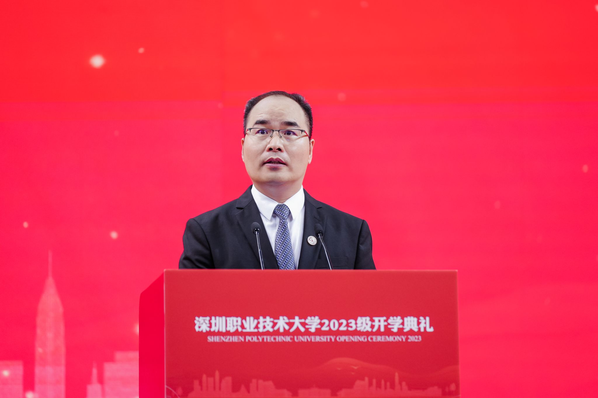 三十而立,高點跨越。你們入學之際恰逢學校建校三十周年,你們也是以深圳職業技術大學名義錄取的首屆新生。深職大是教育部《本科層次職業學校設置標準(試行)》實施以來,全國第一所以優質“雙高”學校為基礎設立的職業本科高校,伴隨你們的入校,學校也在開啟職業本科教育新起點上揚帆啟航。在社會各界高度關注下,學校今年招生成績喜人。首批本科招生200人,物理類所有專業投檔分數線均超過廣東省特控線,錄取最低分555分,超過特控線16分,本科建設實現良好開局。專科招生繼續在同類院校中保持領先,夏季高考錄取6368人中,省內本科上線率達100%。遇見優秀的你們,是深職大的幸運!入讀深職大,也是你們的幸運!讓我們攜手并進,在前三十年輝煌的辦學成績基礎上,高點跨越,改革創新,再創新的輝煌。