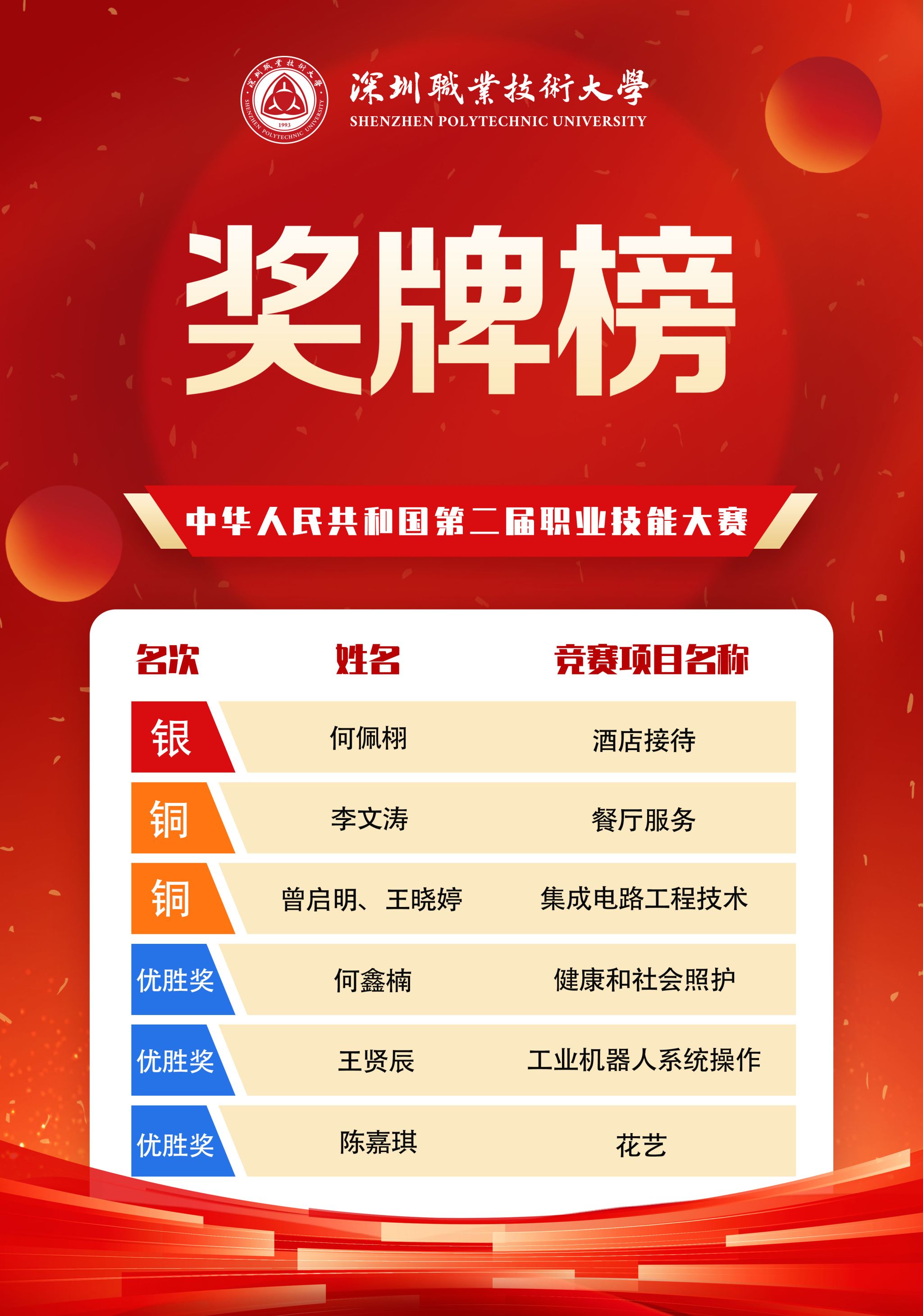 經歷了4天的激烈角逐,9月19日,中華人民共和國第二屆職業技能大賽在天津閉幕,我校7名選手獲得1銀2銅3優勝的好成績。其中,商外學院學生何佩栩獲“酒店接待”賽項銀牌,管理學院學生李文濤獲“餐廳服務”賽項銅牌,電信學院教師曾啟明、王曉婷獲“集成電路工程技術”賽項銅牌。