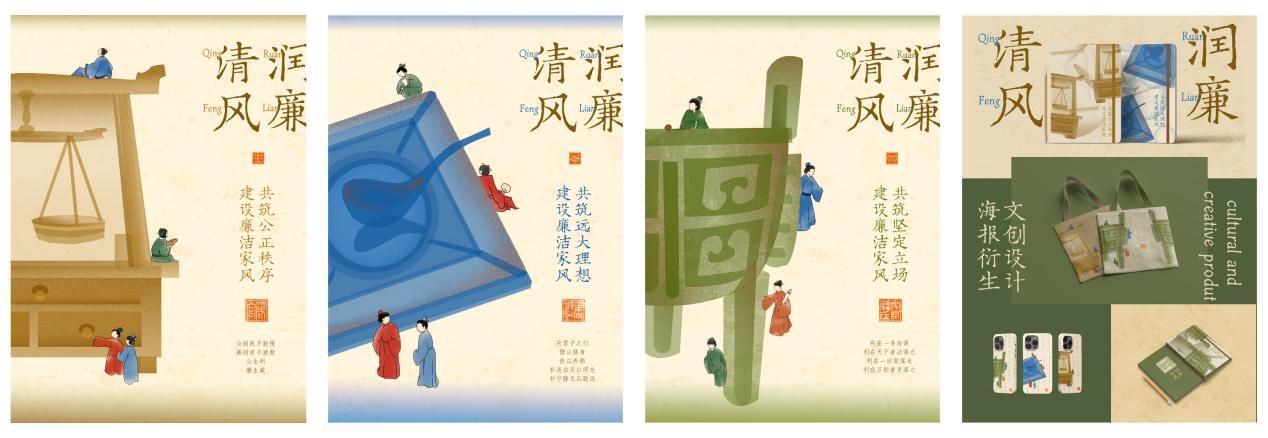 《鵬城薪火——廉潔的傳承》視頻制作由學校紀委辦立項,傳播學院師生團隊共同創作,全校75名師生參與拍攝,講述深圳本土抗日英雄曾生的廉潔故事。作品在大鵬所城內拍攝完成,作品跟隨曾生的視角,一步步展現廉潔自律作風扎根在東江縱隊,扎根在革命先輩奮戰的土地鵬城之中的過程。《清風潤廉》系列海報由藝術設計學院學生陳詠祺創作,以《官箴》《誡子書》《錢氏家訓》為立足點,分別結合天秤、司南和青銅鼎等具有深刻內涵的主體物,用古典人物點綴其間,用視覺語言勾勒廉潔形象,畫面具有敘事感,傳達出清風潤廉的時代內涵,以廉潔家風,涵養時代清風。