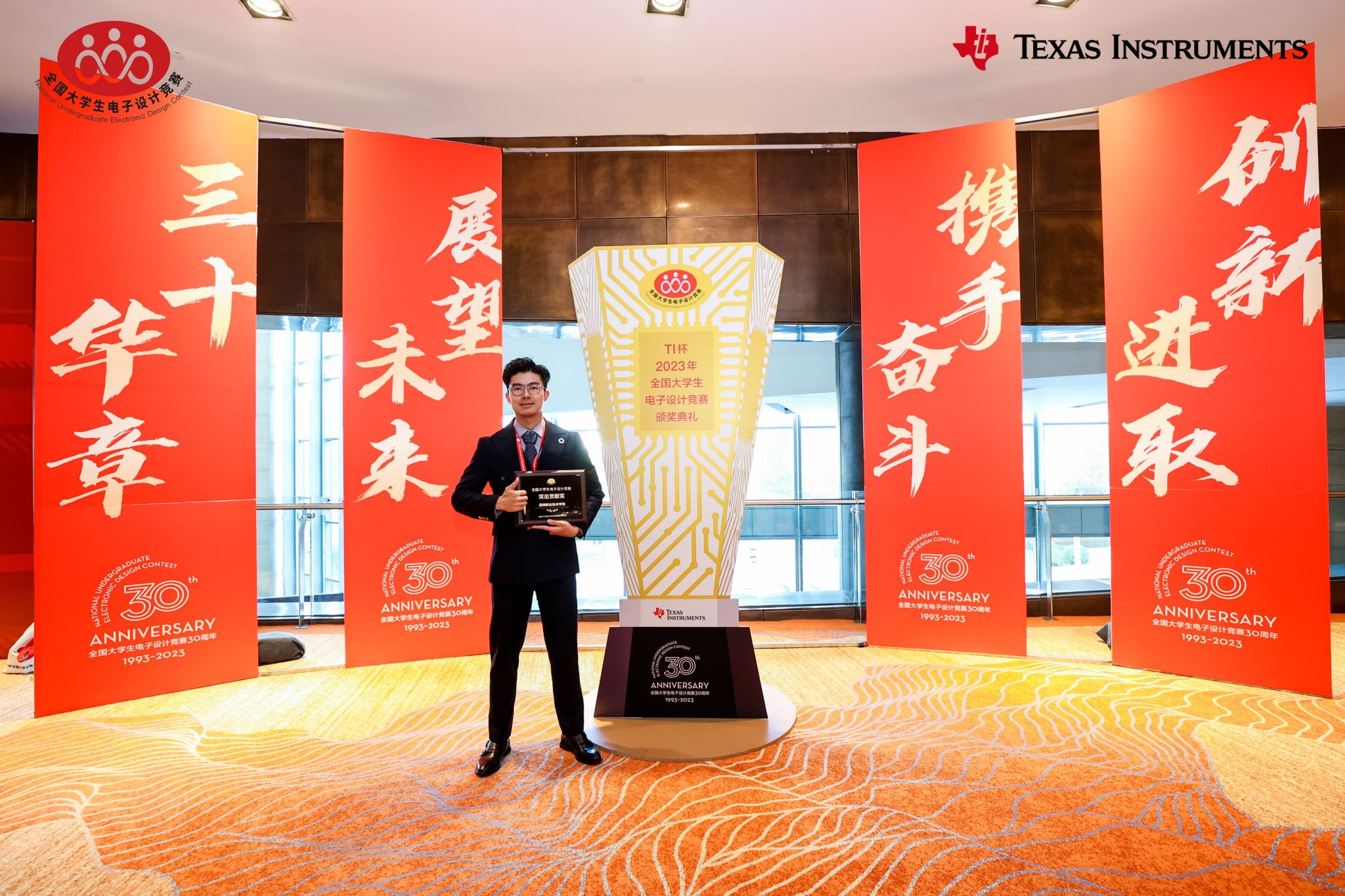 11月19日,2023年全國大學生電子設計競賽頒獎典禮暨30周年慶典在北京舉行。我校與電子科技大學、西安電子科技大學等共計18所學校榮獲全國大學生電子設計競賽30年突出貢獻獎,我校為廣東省唯一獲得該榮譽的學校。