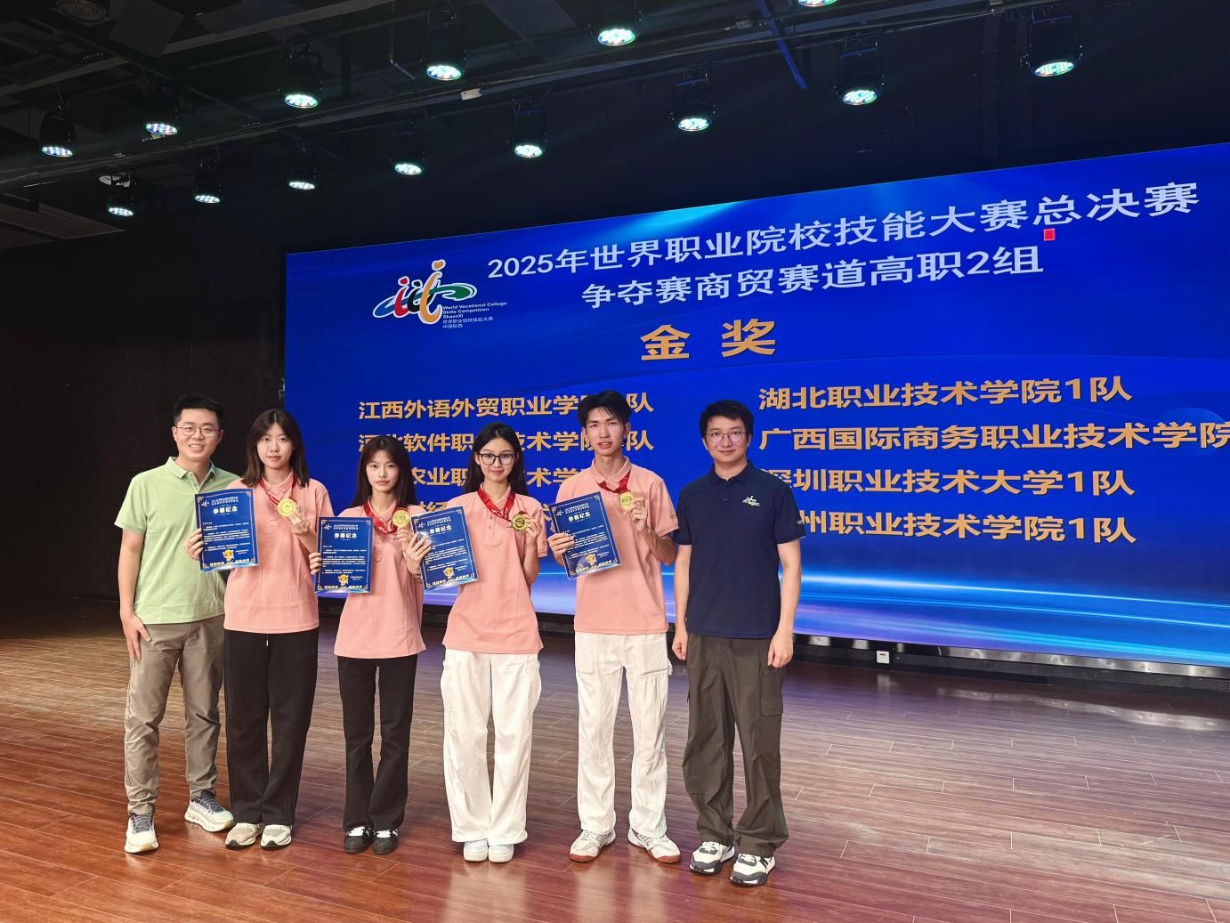 8月27日至28日,2025年世界職業院校技能大賽“商貿賽道”高職組爭奪賽在陜西賽區舉行。我校商外學院學生歐婷玉、郭雪芬、黃梓佳、邱志杰,在指導老師鄧靈昭、陳航的悉心指導下,憑借扎實的專業技能和出色的團隊協作,在陜西工業職業技術大學賽點脫穎而出,勇奪金獎。