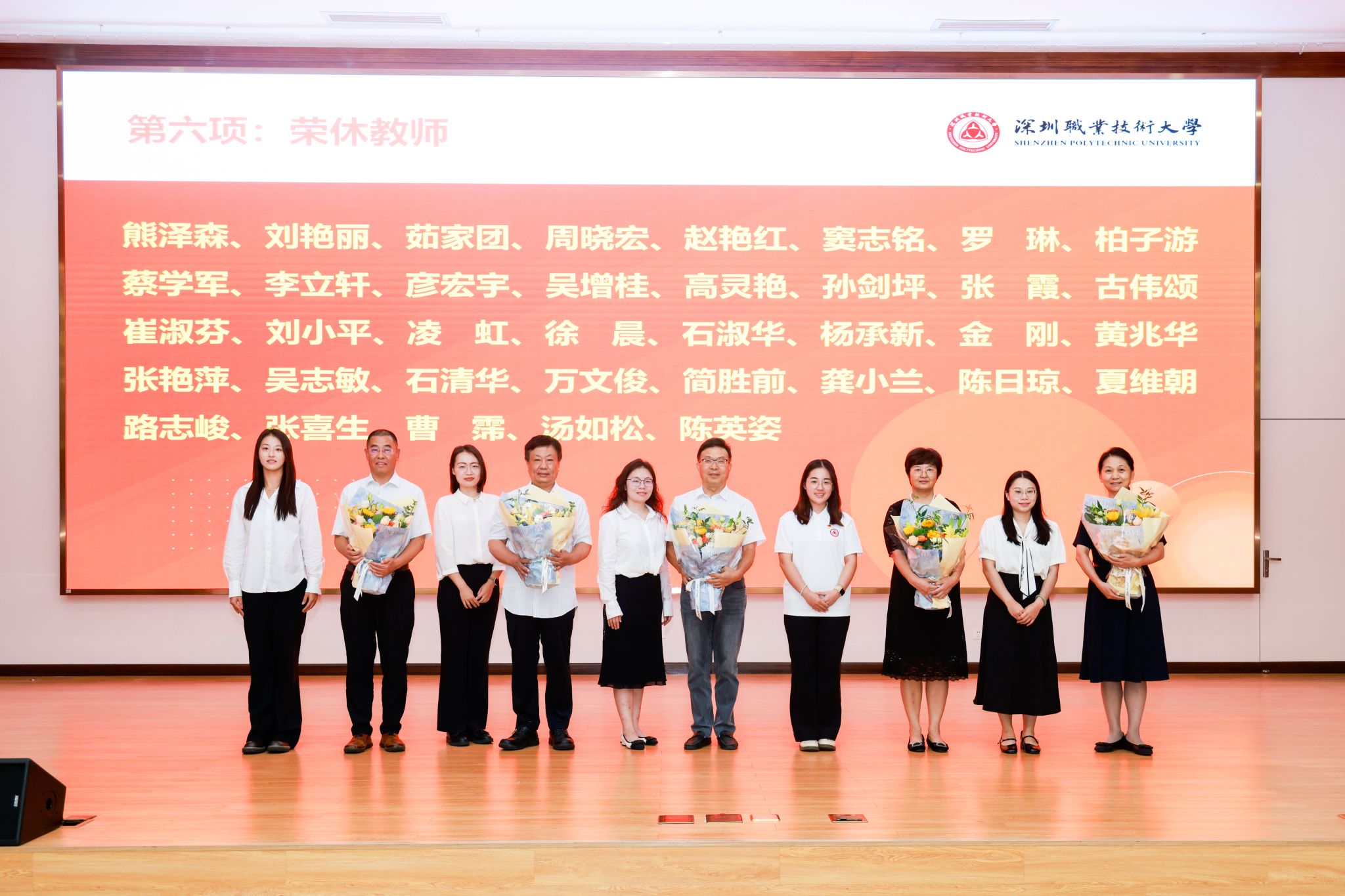 9月10日下午,學校教師節表彰大會在留仙洞園區同德樓1號會議室舉行,熱烈慶祝第41個教師節。會議表彰了學校在2024-2025學年涌現出的先進集體和優秀個人,為從教30年教育工作者頒發紀念章,并為2024-2025學年退休教師舉辦了榮休儀式。校領導、黨委委員,全體中層正職、教師代表和學校高層次人才專家代表出席會議,學校各部門教職工代表250多人參加了線下會議,全校教職工同步觀看了現場直播。表彰大會由學校黨委副書記、紀委書記何莉主持。